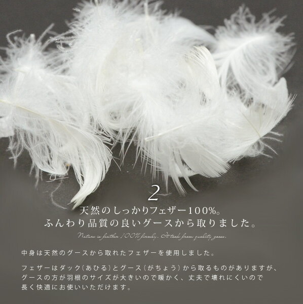 素材 中材:フェザー100%生地:綿100% 重量 中わた重量:1.6kg製造国 日本(国産) 配送送料区分は160です。