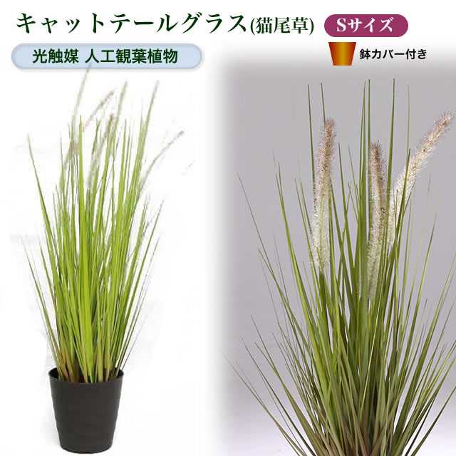光触媒人工観葉植物S キャットテールグラス(猫尾草)鉢カバー付【鉢 ポット 室内 観葉 おしゃれ 飾り】