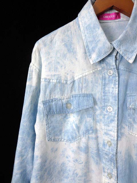 チュウ CHUXXX シャツ シャンブレー ケミカルウォッシュ スカル 7分袖 F ブルー レディース 【中古】【ベクトル 古着】 180309 ベクトル枚方店表記サイズF(M〜Lサイズ位のサイズ感になります。