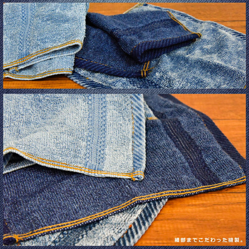 インディゴ染めのデニム風タオル。