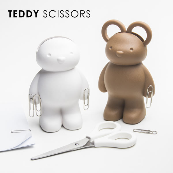 テディーベアーはさみクリップホルダー クマ はさみホルダー くま テディーベアー文房具 Qualy クオリー ホワイト ブラウン 白 茶色 あす楽